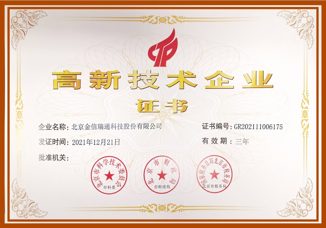 喜報(bào):金信瑞通榮獲中關(guān)村高新技術(shù)企業(yè)稱號(hào)并獲得多項(xiàng)5G軟...